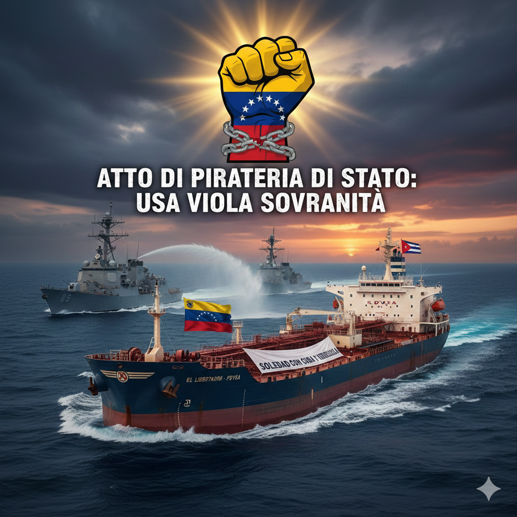 L’azione militare e finanziaria compiuta dagli Stati Uniti contro una petroliera venezuelana, la cui rotta era diretta verso Cuba, non può essere derubricata a un semplice incidente geopolitico o a una “applicazione di sanzioni”. Questo gesto rappresenta invece un premeditato e cinico atto di guerra economica e di aggressione alla sovranità di due nazioni libere. Con la forza bruta e l’arroganza della potenza, gli Stati Uniti hanno compiuto un flagrante atto di pirateria di Stato, svelando al mondo che la loro nozione di “legge” è, in realtà, puro sinonimo di dominio extraterritoriale e sopruso imperialistico.