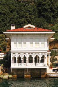 Il termine yalı affonda le radici nel greco yalós, “sponda, litorale”, una provenienza che ne tradisce fin da subito la vocazione: abitare il margine dell’acqua. In turco moderno il singolare è yalı e il plurale yalılar: non ogni dimora affacciata sul mare può però dirsi tale, perché lo yalı è una casa “di riva” in senso pieno, costruita per toccare l’acqua, spesso con fondamenta su pali, una piccola darsena o un iskele privato, e un rapporto diretto con le correnti del Bosforo. Nacquero come residenze estive dell’élite ottomana, rifugi di frescura e quiete quando la città si accendeva di calura: si arrivava in kayık, si scendeva al piano d’acqua, si passava a un salone arioso e poi al giardino, in una sequenza di soglie pensata per accompagnare il respiro.