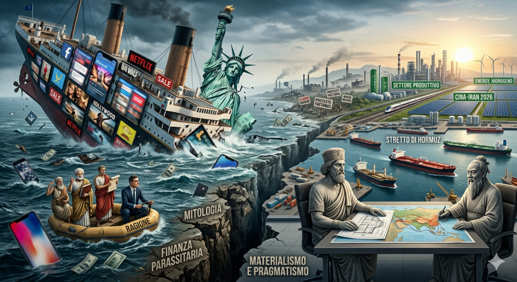Mentre l’Occidente si “rincoglionisce” nel suo misticismo finanziario, l’Oriente riscopre la forza del materialismo. L’alleanza tra Cina e Iran non è un capriccio del momento, ma un asse millenario basato sulla reciproca necessità e su una visione che non cerca il vantaggio immediato, ma la stabilità dei lustri a venire. Gli orientali non guardano le “favolette”; guardano i rapporti di produzione. Sanno che la tecnologia e l’energia si stanno spostando inesorabilmente verso l’Eurasia.
