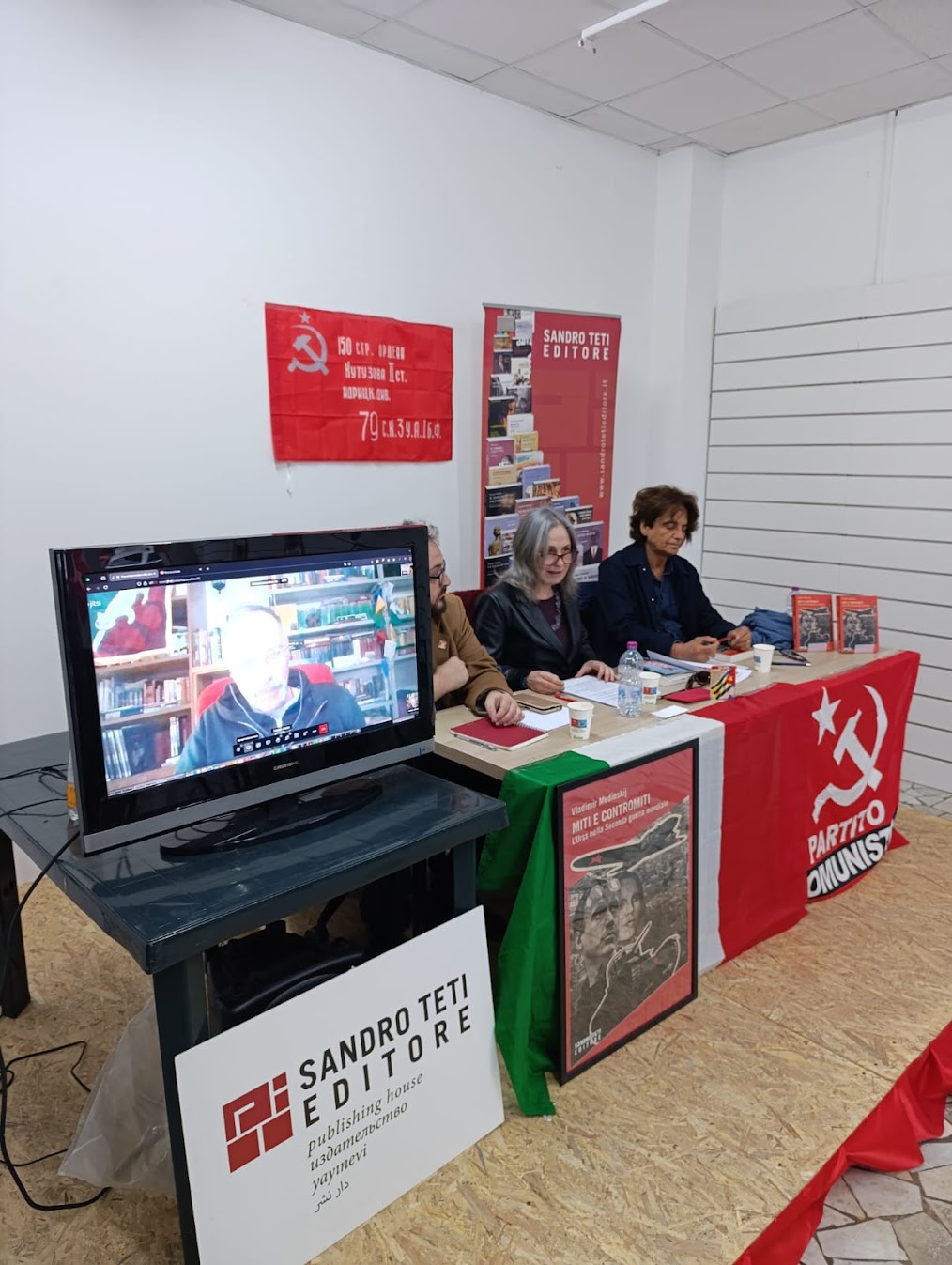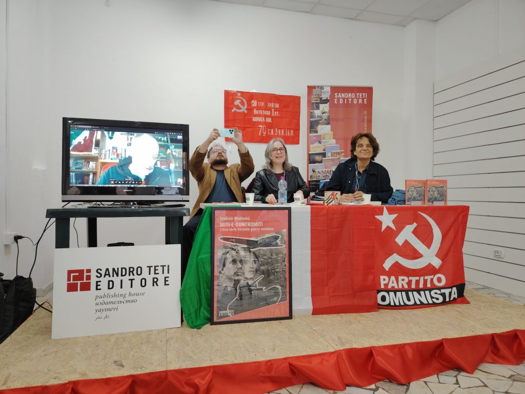Teti ha parlato dei Miti e Contromiti e anche del tema della Russofobia contemporanea che affonda le radici nella lontana storia dell’impero zarista. Il nostro editore poi ha spaziato su infinite tematiche relative all’unione Sovietica, alla Federazione Russa e alle attuali censure delle verità storiche dell’Operazione speciale in Ucraina.