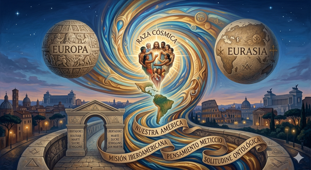 In conclusione, il destino degli spazi non è un determinismo geografico, ma una chiamata all’azione interiore. Tanto in Dugin quanto in Vasconcelos, l’area geografica diventa il corpo di un’anima collettiva. Tuttavia, l’America Latina aggiunge a questa visione la dignità della sofferenza. Da Bolívar a Vasconcelos, fino alla Macondo di Márquez, il continente si configura come il luogo dove il conflitto della modernità può finalmente risolversi in una sintesi meticcia. È una missione che, pur nella sua apparente invisibilità rispetto ai grandi blocchi del potere mondiale, custodisce la chiave per un’umanità futura, finalmente libera dalla “solitudine” della divisione razziale e culturale.