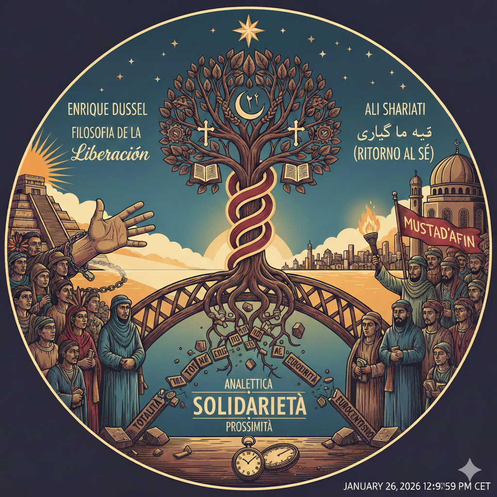 In questo, Dussel e Shariati convergono in modo sorprendente. Shariati, attraverso la sua sociologia dell’Islam, proponeva un risveglio della coscienza che non fosse una semplice analisi marxista delle classi, ma una risposta esistenziale al grido del Mustad’afin (l’oppresso). Per entrambi, la verità non nasce dal pensiero astratto, ma dalla prassi della liberazione.